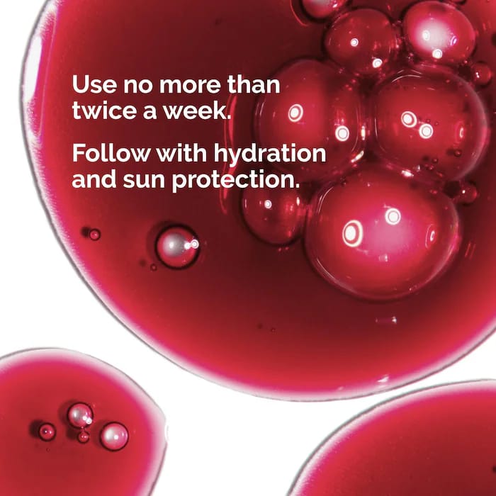 - Deep Exfoliation: 30% AHA and 2% BHA exfoliate and unclog pores.